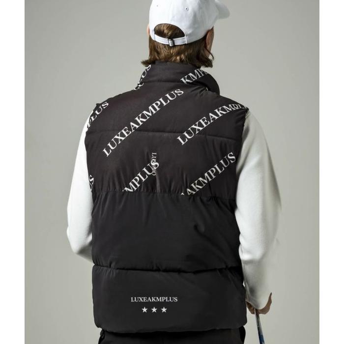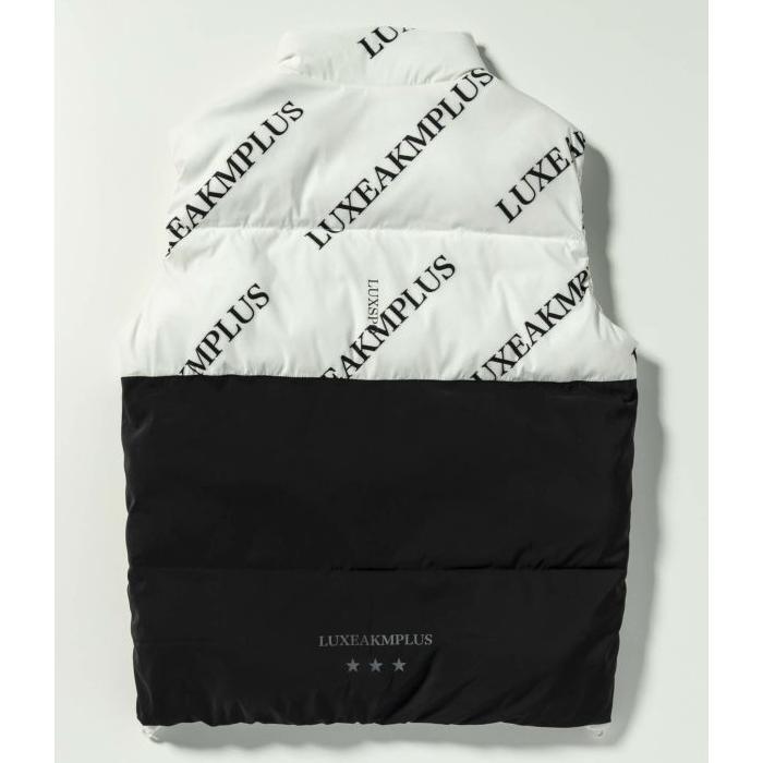 スタイリッシュなバイカラーの配色が目を引く中綿ベスト。斜めに走る総柄ロゴがスポーティな表情を演出。ポケットには止水ファスナーを配置し、ラグジュアリーな仕様に。落ち着きがちなコーデに投入することで存在感を与えてくれるアイテムです。