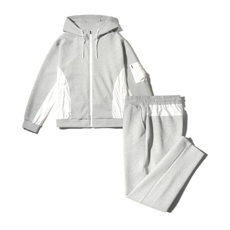 ボンディング生地をベースにナイロン生地の切替しを施したセットアップ。
