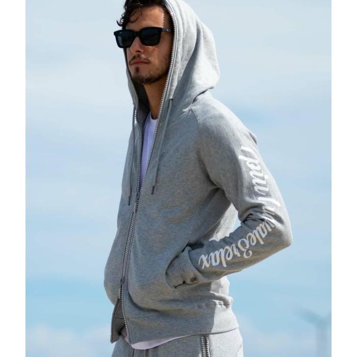 厚手のスウェットを使用したタフな着心地がデイリーに重宝するセットアップ。パーカー、パンツのポケットに仕込んだファスナーにはラインストーンを贅沢に使用。動くたびにラグジュアリーな輝きを放ち、大人のデイリースタイルを格上げします。左サイドには艶やかな光沢のグリッターロゴを大胆に配置。他にはない存在感でスタイリングの要として活躍が期待できます。