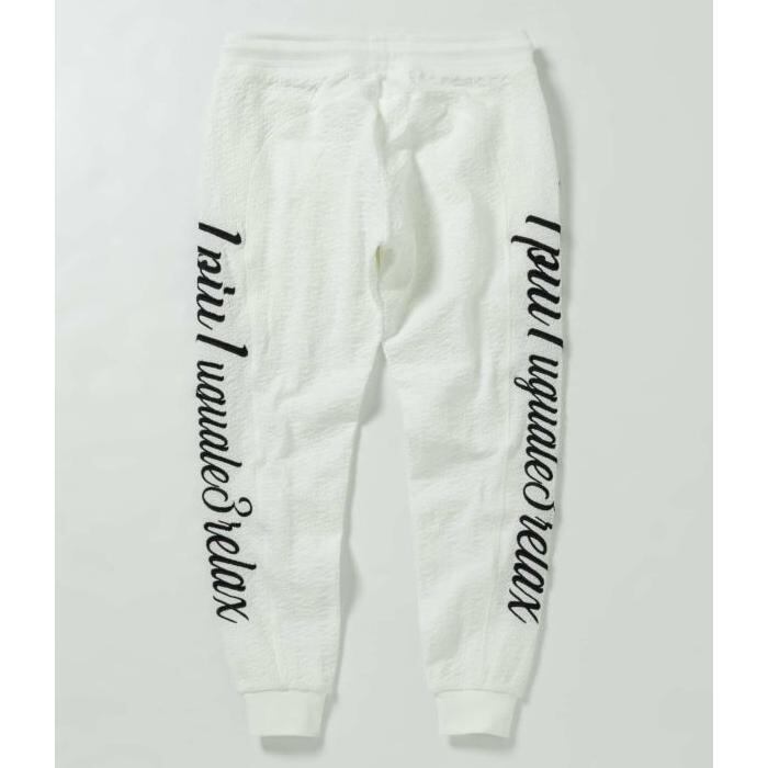 凹凸のあるシボ素材が肌に触れる面積を減らし、通気性に優れた清涼感のある着心地が魅力のセットアップ。ニットを縫製した特殊構造により、ストレスフリーな伸縮性とスマートなシルエットを両立しています。人気の筆記体ロゴを刺繍で配置。リラクシングな表情の中に高級感を漂わせます。