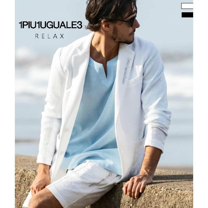 先行予約 1PIU1UGUALE3 RELAX ウノピゥウノウグァーレトレ リラックス クレープニットジャケット シングル テーラード メンズ カジュアル きれいめ 大人