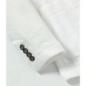 フロントダーツで腰回りをシェイプしすっきりとした仕上がりに。ラペルに刺繍した人気の筆記体ロゴがアクセントを添えます。軽快な着用感で暑い夏でも爽やかにドレスアップできるサマージャケット。