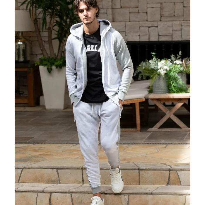 柔らかなスウェット素材を採用した心地よい肌触りも魅力。ブランドオリジナルパターンでリラクシングな着心地も実現しています。