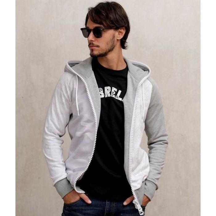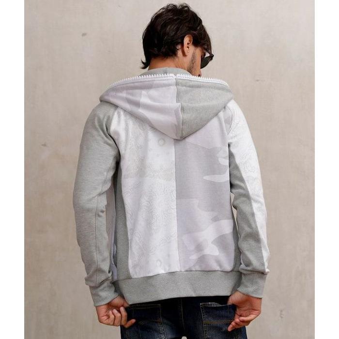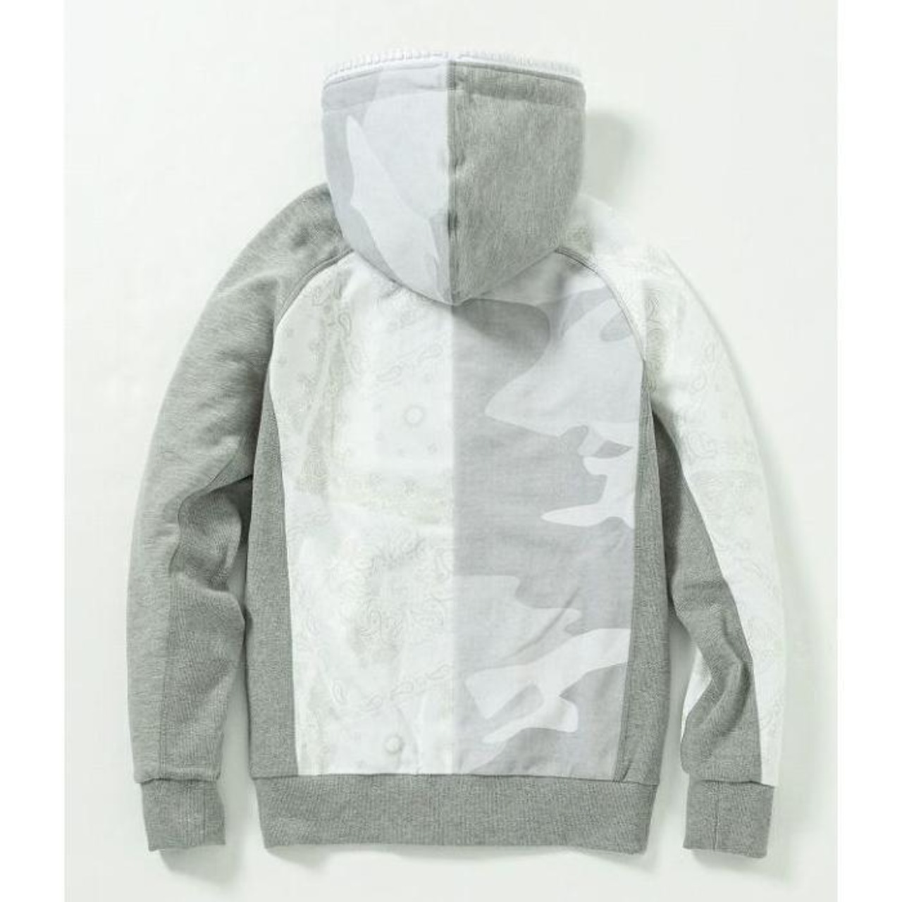 人気のカモ柄×ペイズリーで大胆に切り替えたジップアップフーディー。キャッチーなビッグファスナーがさらに遊び心あるアクセントをプラスします。