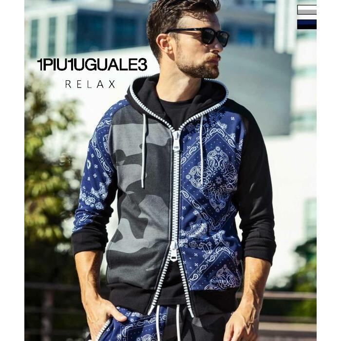 1PIU1UGUALE3 RELAX ウノピゥウノウグァーレトレ リラックス カモ×ペイズリー柄パーカー メンズ スウェット フーディ 迷彩 カジュアル スポーツ ルームウェア | UPPER GATE