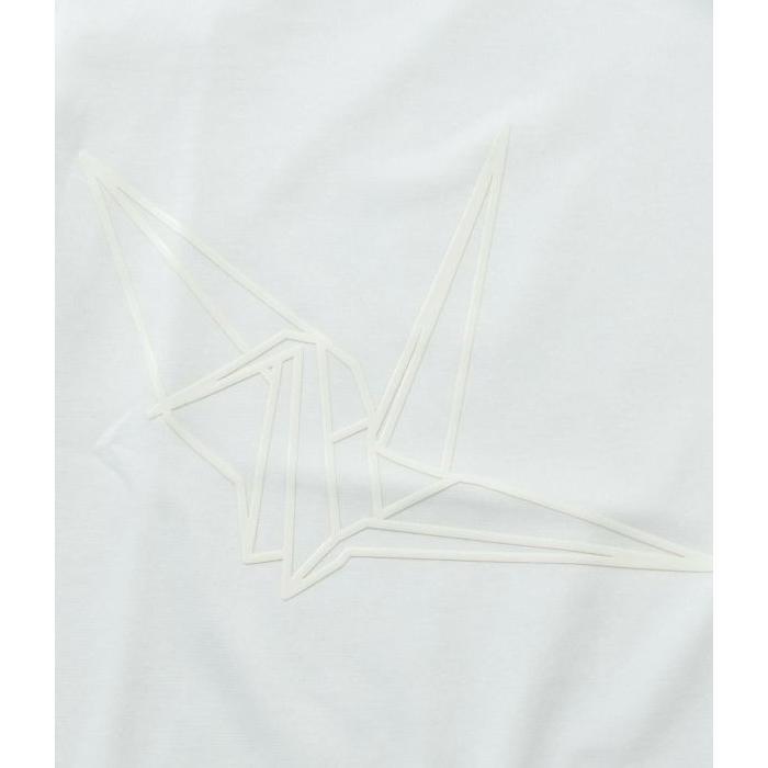 フロントに大きく配置した「折り鶴」が目を惹く半袖Tシャツ。光沢のあるジェルプリントが存在感を放ちます。