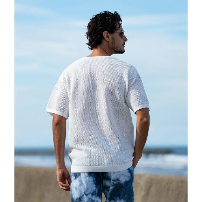 吸水性に優れた12ゲージのメッシュ編みが涼しげな透け感を演出。シンプルなデザインながら素材感が豊かな表情を齎します。