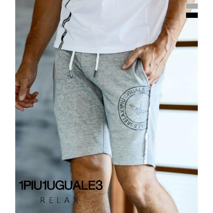 1PIU1UGUALE3 RELAX ウノピゥウノウグァーレトレ リラックス サークルロゴパイピングハーフパンツ メンズ ショートパンツ スウェット 短パン カジュアル