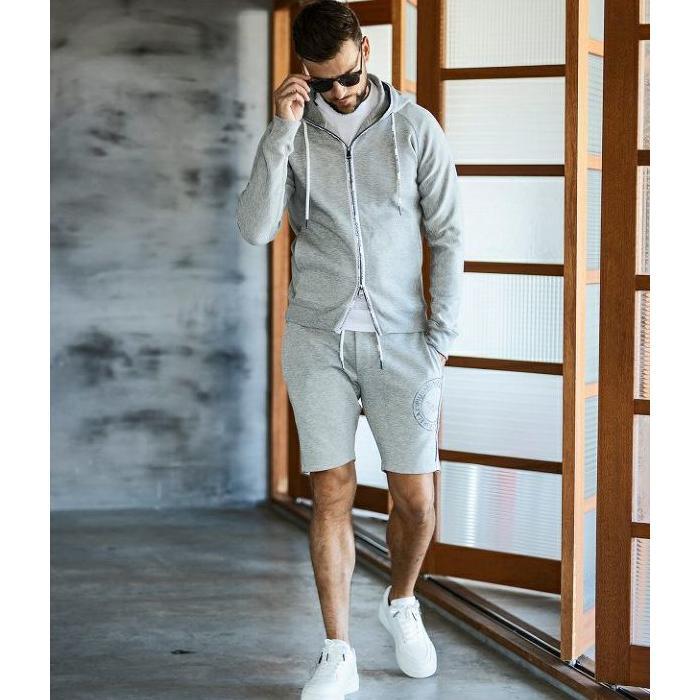 パーカーのバック、パンツのフロントに大きく配置したサークルロゴがキャッチーなインパクトを演出。ほのかに艶のあるジェルプリントを同色使いすることで大人のアイテムに格上げしています。ブランドロゴでパイピングし、360°どこから見てもサマになるこだわりの仕上がりです。