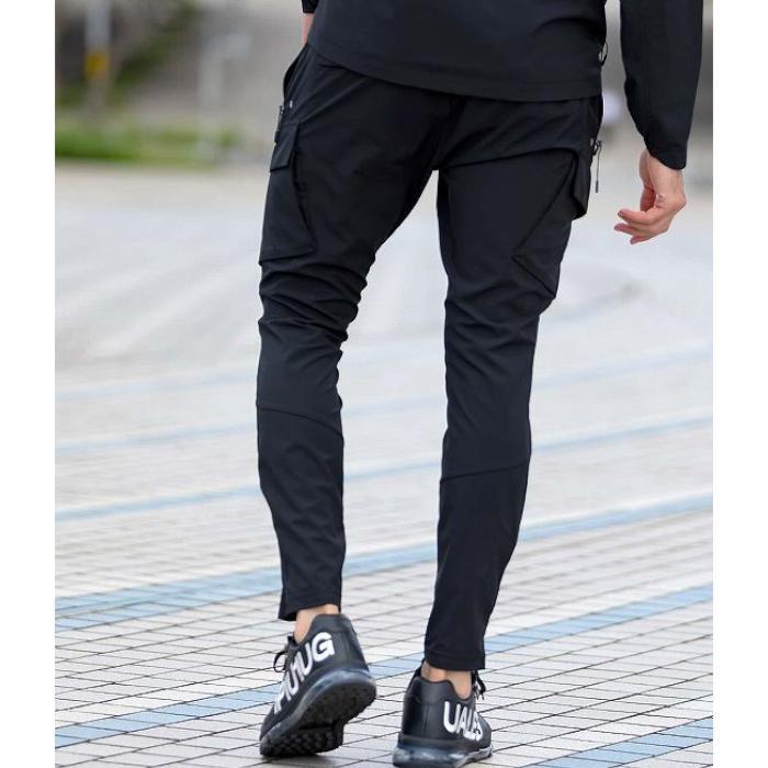 軽量かつ高いストレッチ性でウォーキングやトレーニングなどアクティブなシーンに活躍するセットアップ。フロントとバックにリフレクタープリントを施し夜間の安全性も確保。デザイン性、機能性ともに申し分なくタウンユースにも映える一着。