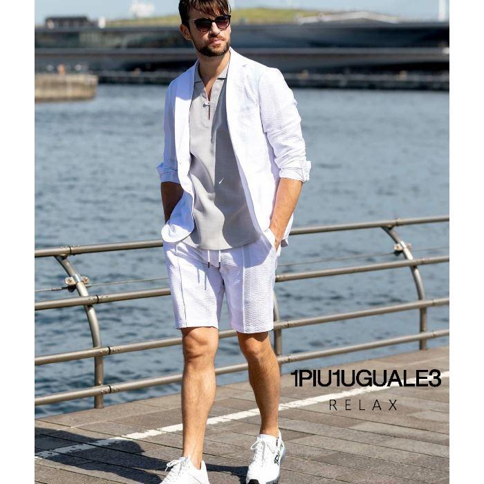 1PIU1UGUALE3 RELAX ウノピゥウノウグァーレトレ リラックス シアサッカー セットアップ メンズ スーツ ストライプ 上下セット きれいめ