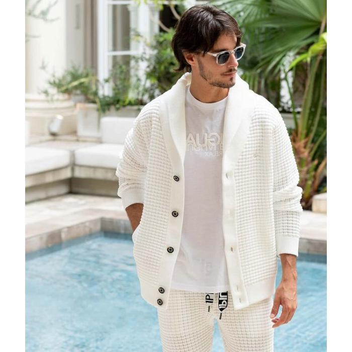 1PIU1UGUALE3 RELAX ウノピゥウノウグァーレトレ リラックス ワッフルカーディガン メンズ ショールカラー カジュアル 男性 タオル生地 ルームウェア リゾート