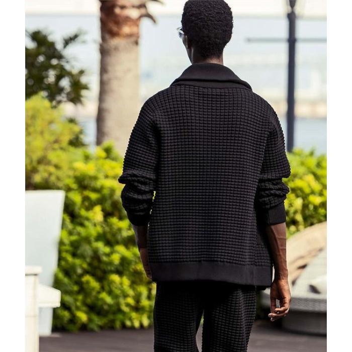 糸を膨らませて格子状に凹凸を出した柔らかな表面感により上質なタオルのような優しい肌触りを形成。伸縮性・吸汗速乾に優れたストレスフリーかつリラクシングな着心地が魅力です。