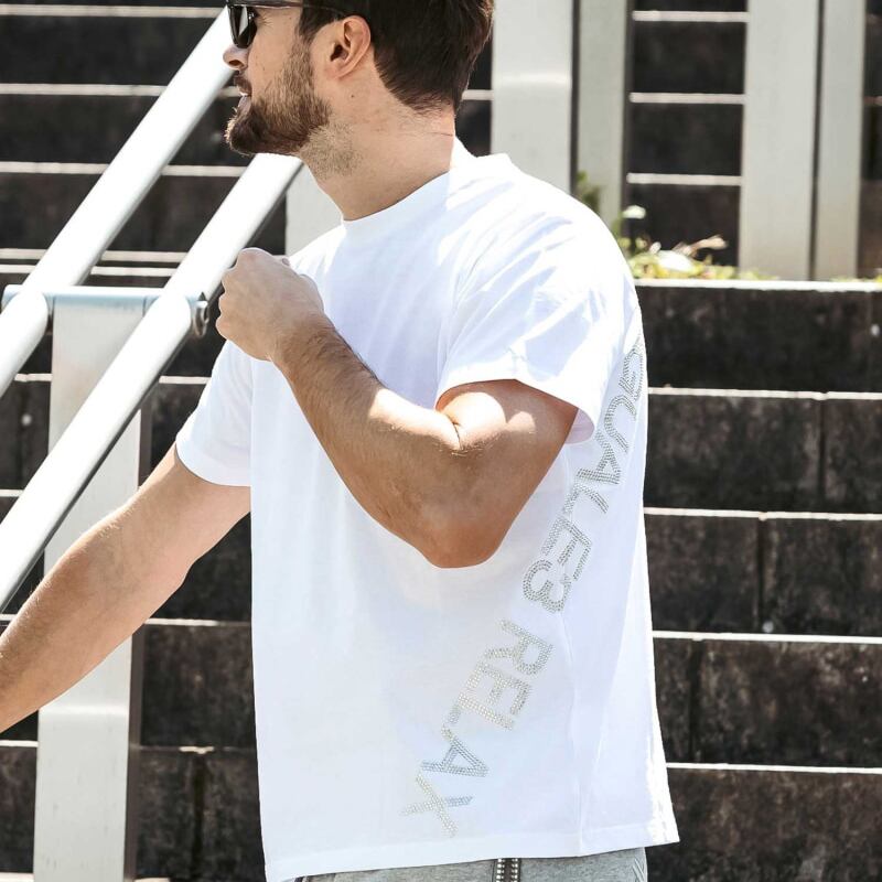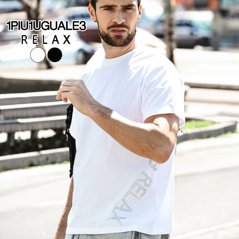 1PIU1UGUALE3 RELAX ウノピゥウノウグァーレトレ リラックス ラインストーン サイド ロゴ 半袖 Tシャツ カットソー メンズ おしゃれ ブランド ウノピュウ | UPPER GATE