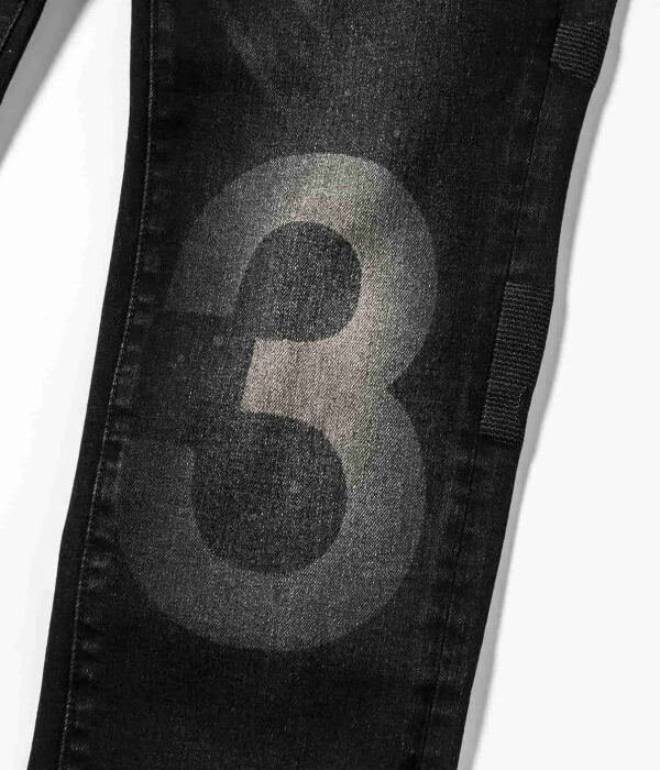 全体の程よいダメージ加工とともに目を惹くのが印象的なカモフラ柄。馴染みの良い同色の刺繍で施すことで、他にはないビジュアルながら悪目立ちしない絶妙な仕上がりに。