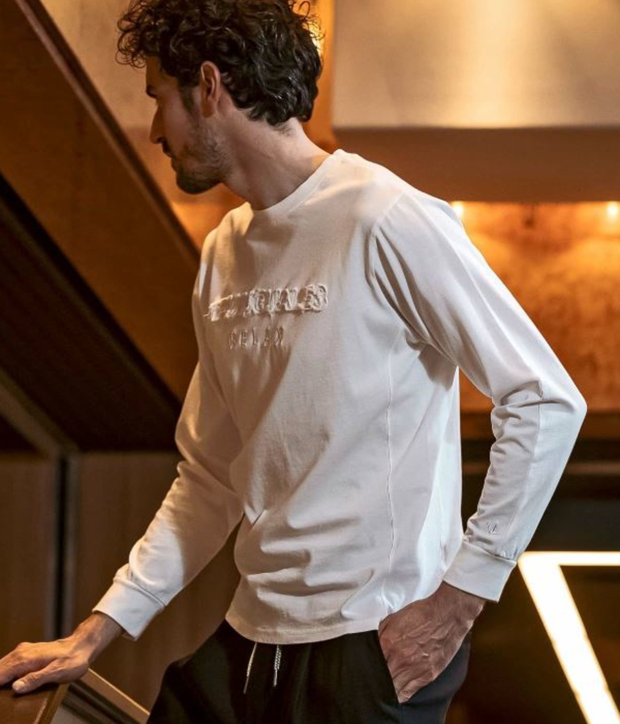 1枚でさらりと着こなすのは勿論、ジャケットのインナーとしても存在感を発揮。デニムにもスラックスにも合わせやすい取り回しの良さでスタイリングを選ばない秀逸な一枚です。