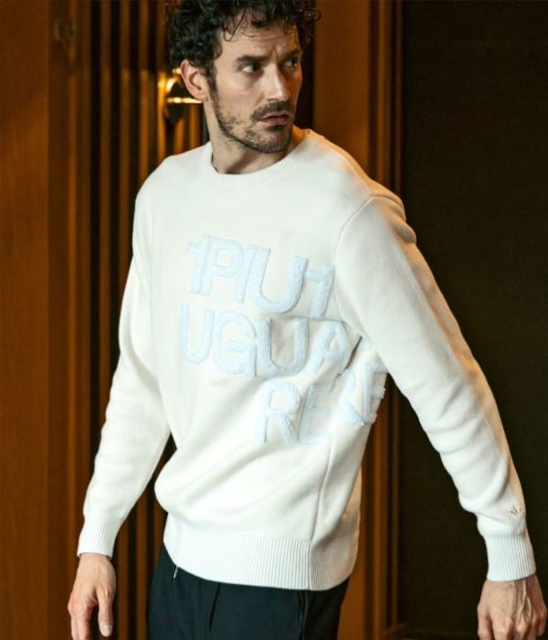 1PIU1UGUALE3 RELAX ウノピゥウノウグァーレトレ リラックス サガラ刺繍ニット メンズ セーター 長袖 カジュアル 秋冬 男性 インナー プレゼント