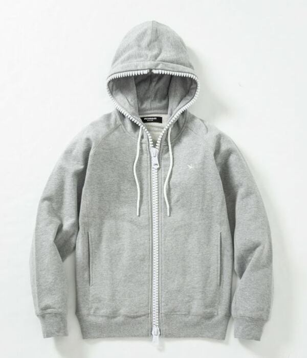フードまでぐるっと囲む大きなファスナーが定番のスウェットパーカーに他とは違う遊び心をプラスします。