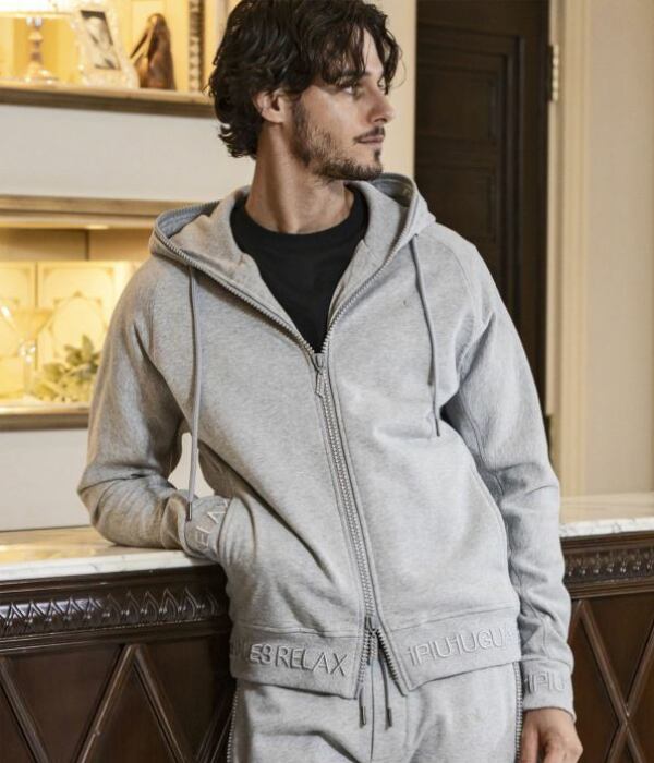 1PIU1UGUALE3 RELAX ウノピゥウノウグァーレトレ リラックス リブ刺繍ラインストーンジップパーカー メンズ フーディ ジャージ スウェット カジュアル スポーツ | UPPER GATE