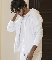 フロントからフードまでぐるりと囲んだファスナーにはラインストーンを配置、動くたびにきらりと上品な輝きを放ちます。